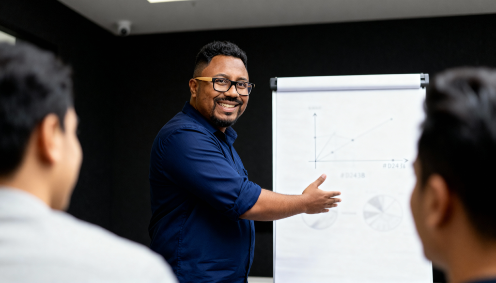 Enquanto você hesita, outro menos preparado tá fechando negócios na sua frente, conquistando pessoas na sua frente, conseguindo promoções na sua frente — só porque fala com segurança.